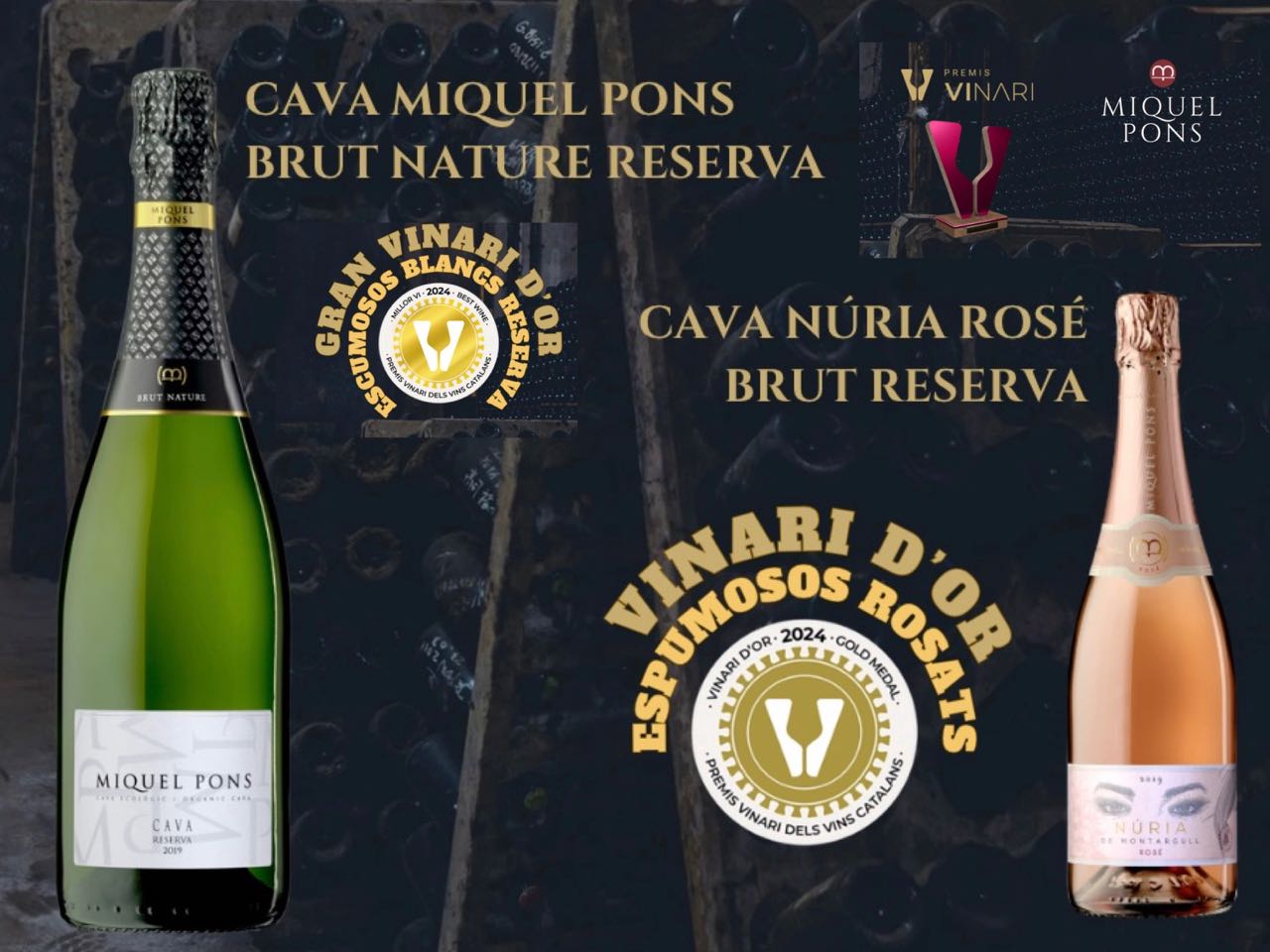Després de dos anys obtenint la medalla d’or al certamen, aquest any el cava Miquel Pons Brut Nature reserva del 2021 (DO Cava) ha obtingut la distinció Vinari Gran Or com a millor vi de la categoria d’escumosos blancs reserva. Aquest és un cava de producció 100% natural i artesanal, sense licor afegit. Elaborat amb raïm seleccionat de les vinyes de les finques de la Granada (Alt Penedès) que s’han transformat els últims anys a la producció ecològica. El cupatge està format amb les varietats tradicional: Macabeu (50%), Xarel·lo (40%) i Parellada (10%), amb 24 mesos de criança mínima a la cava, rimat, aclarit i degollat manualment, sense congelar el coll de l’ampolla. Un procés que garanteix la màxima qualitat del vi en que, ampolla per ampolla, tota la producció passa per les mans dels especialistes de Miquel Pons, conservant la manera de produir tradicional i ancestral del celler.